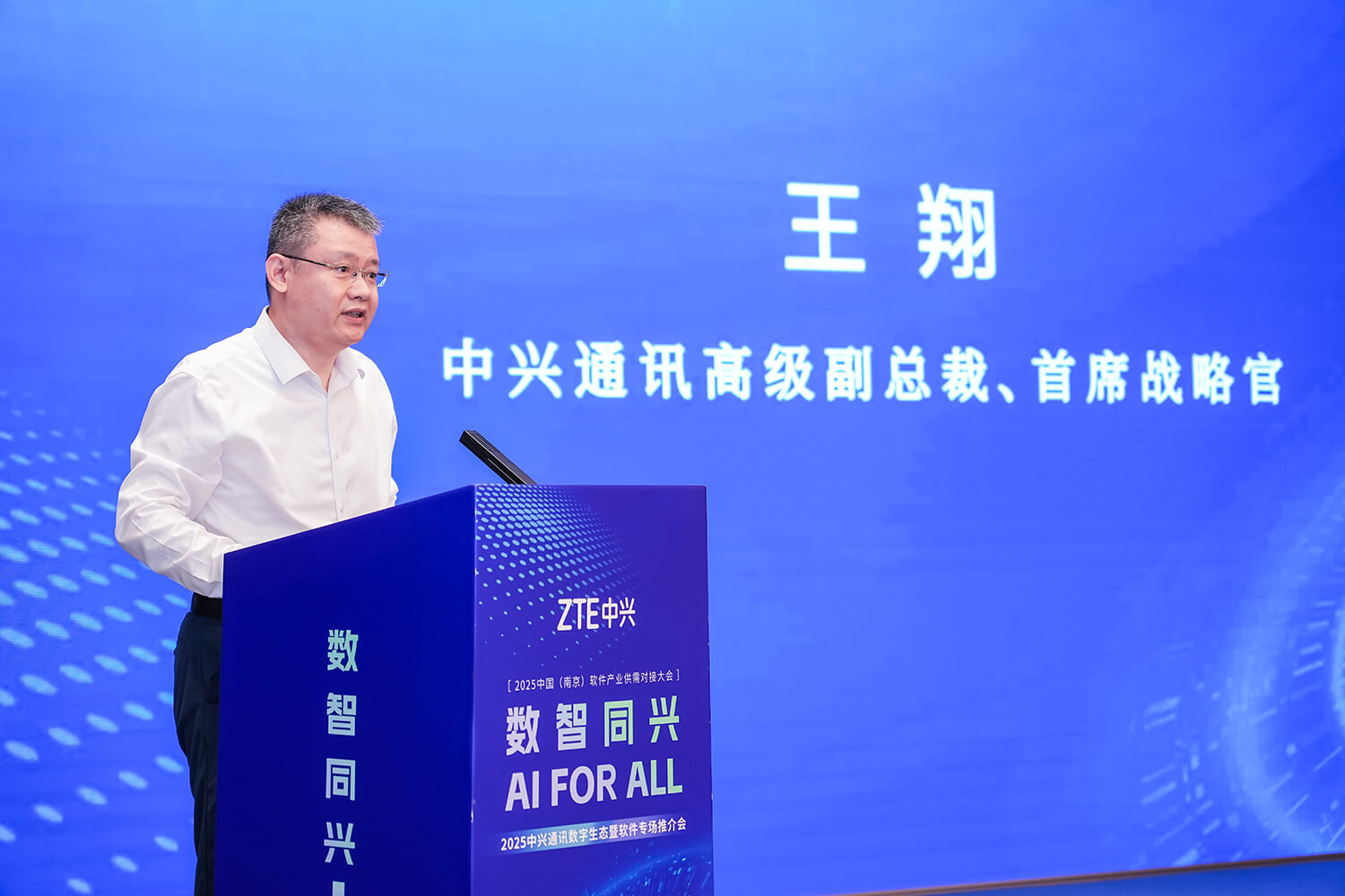 中兴通讯高级副总裁王翔在致辞中,深度回溯了公司四十年发展历程,特别强调与南京的深厚渊源,从技术研发到产业落地,中兴通讯与这座历史文化名城的合作持续深化。并指出:“中兴通讯始终秉持开放共赢理念,将持续携手各方伙伴,共同开拓数智领域的新增长空间。”